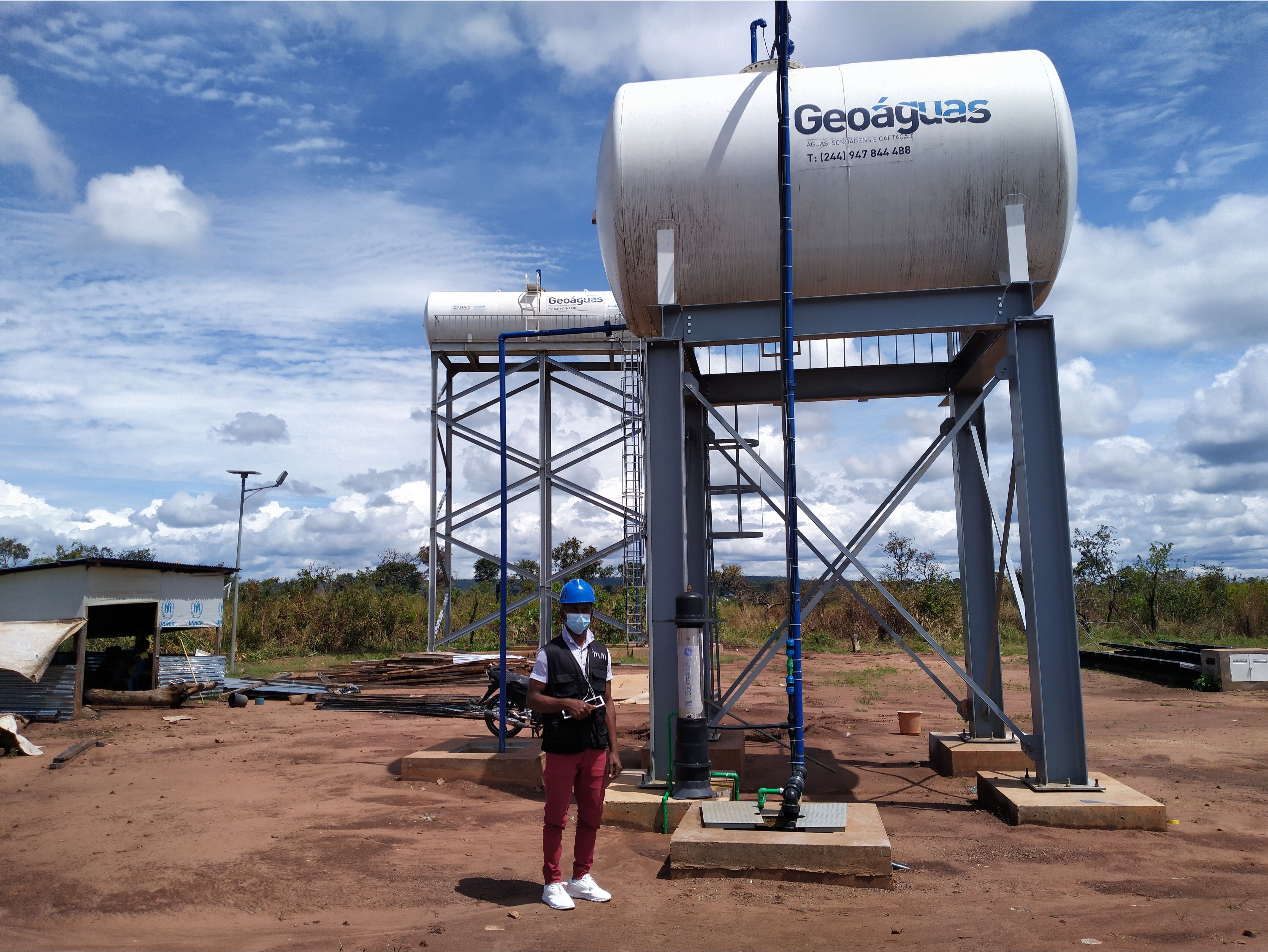 Visita guiada ao acampamento dos refugiados localizados no Município do Lóvua-Lunda Norte para instalação de tectos aos edifícios já erguidos que serviram de maternidade para os Refugiados da RDC. Incluindo os benefícios que este já tem com a água potável por via de furos criados no acampamento. Visita ocorrida em Abril de 2021.